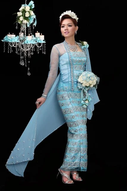 Myanmar Model and Actress, Pearl Win, Colorful Burmese Fashion Dress